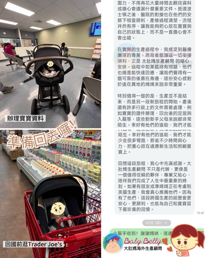 大肚媽生產顧問不只是代辦,更像是一個值得信賴的夥伴,專業又貼心,陪伴我們完成了人生中最重要的時刻。如果有朋友或準媽媽正在考慮到美國生產,我會真心推薦他們。因為有了他們,這段跨國生產的經歷會更安心、更順利,也能為自己和寶寶留下最珍貴的回憶。